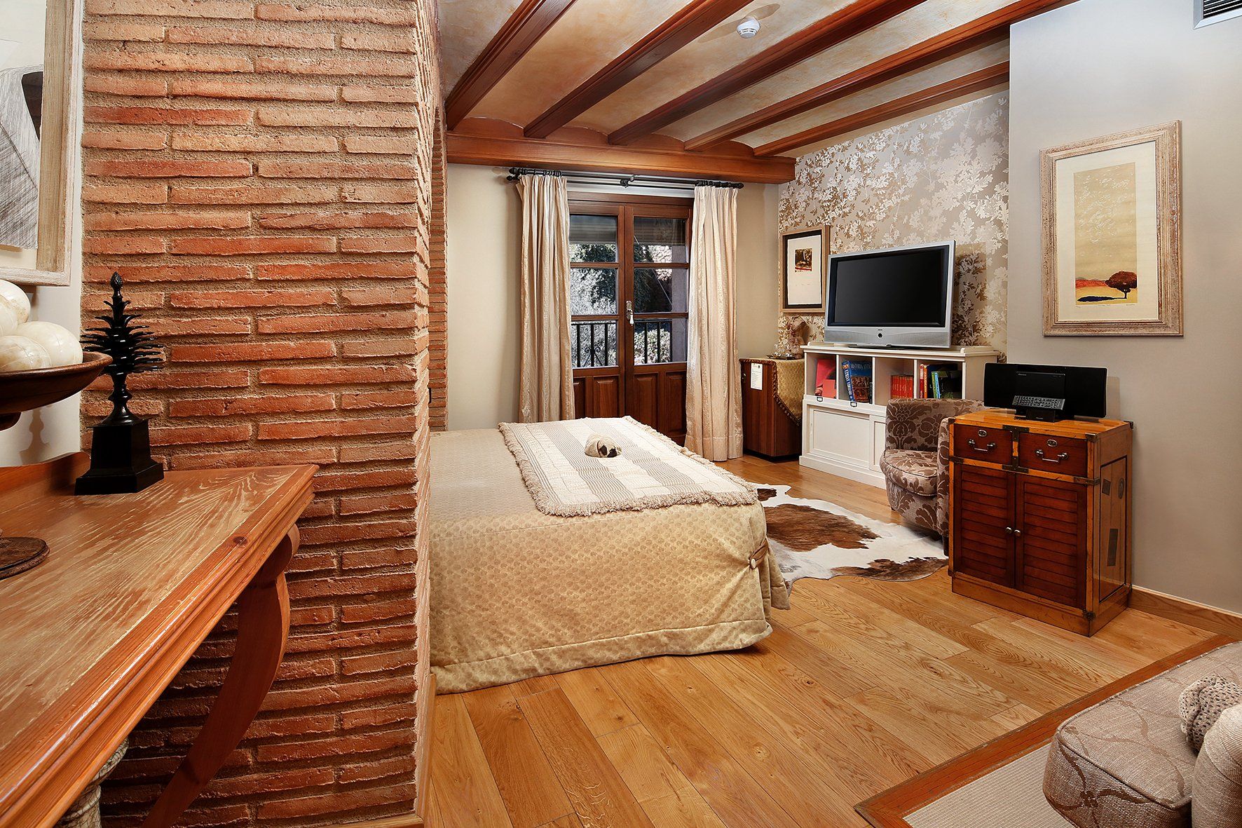 Se coloca la cama bajo una arcada de medio punto de ladrillo con un trampantojo del paisaje del otoño del somontano y sus aves. Abriendo su balcón se iluminan sus tonos marrones, cremas y rojizos. Destaca el armario, una antigua alacena de recuperación. La bañera de hidromasaje es rectangular, siendo el baño de mármol trabertino y calatorado.